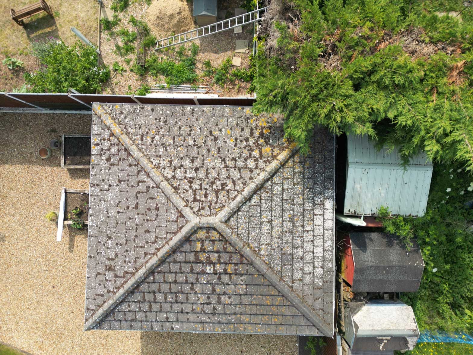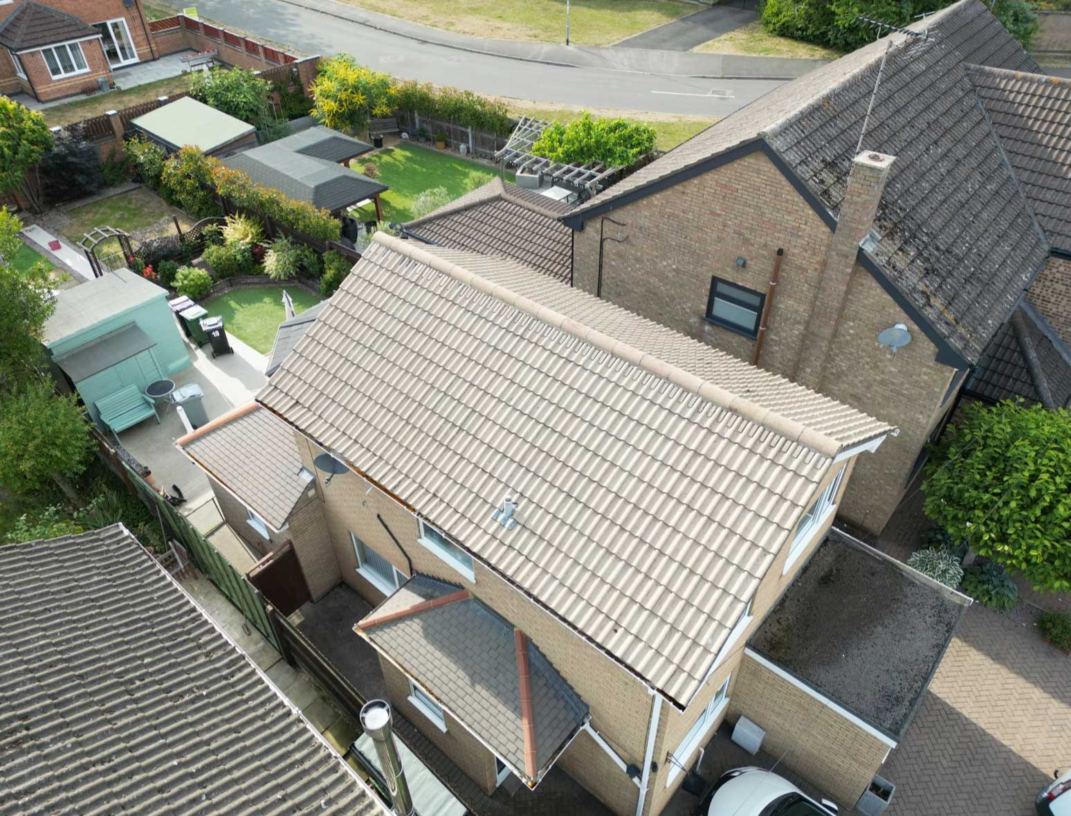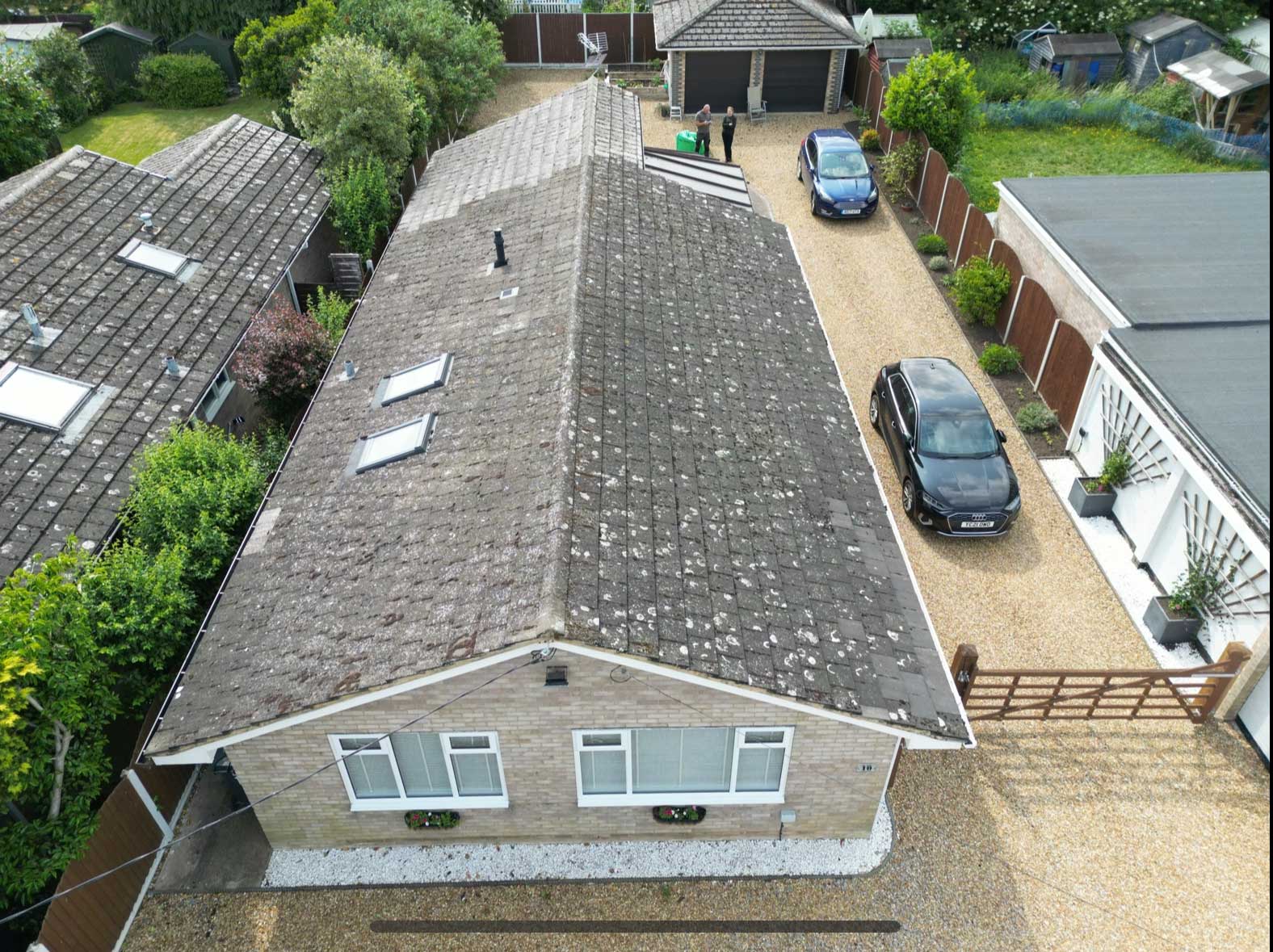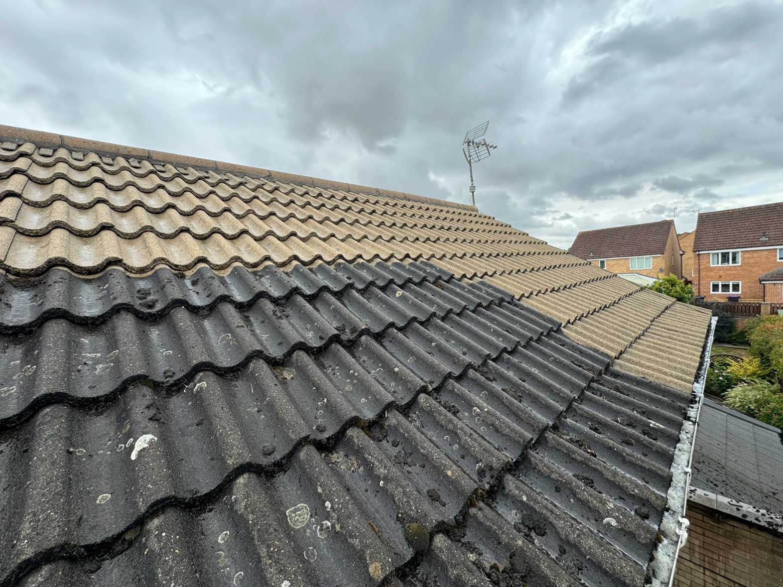 The roof is now clean and clear, with moss safely removed and the surface ready for biocide treatment.