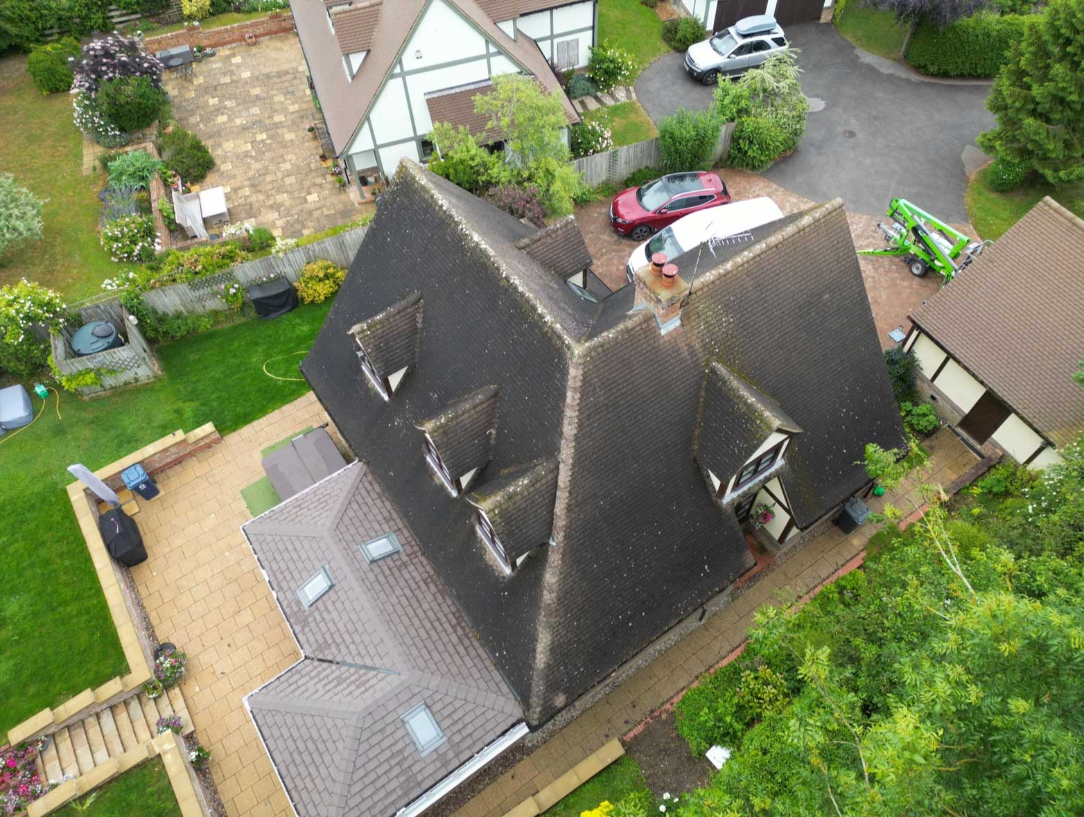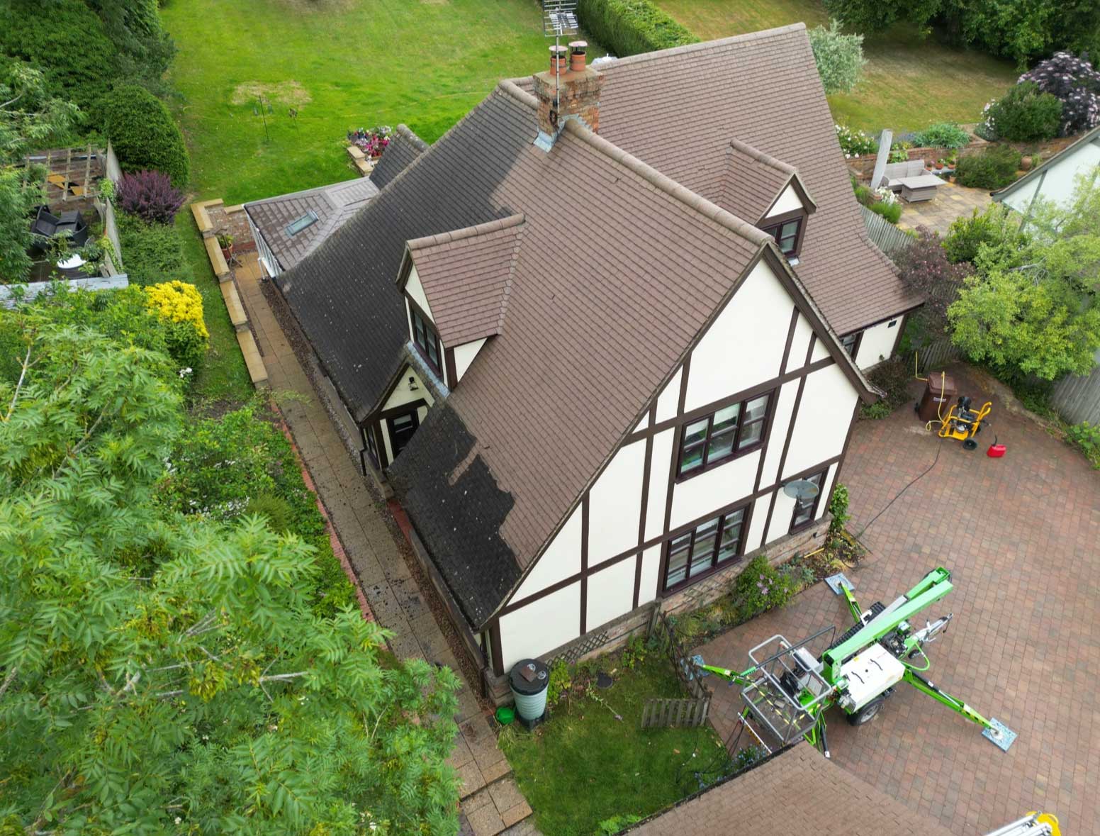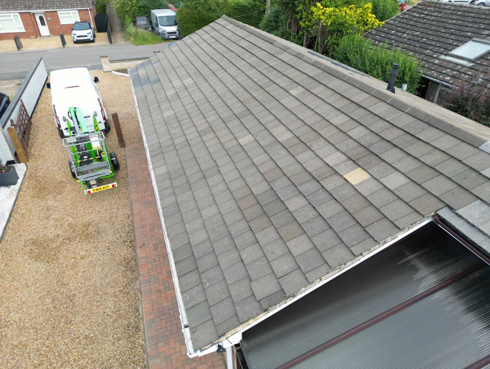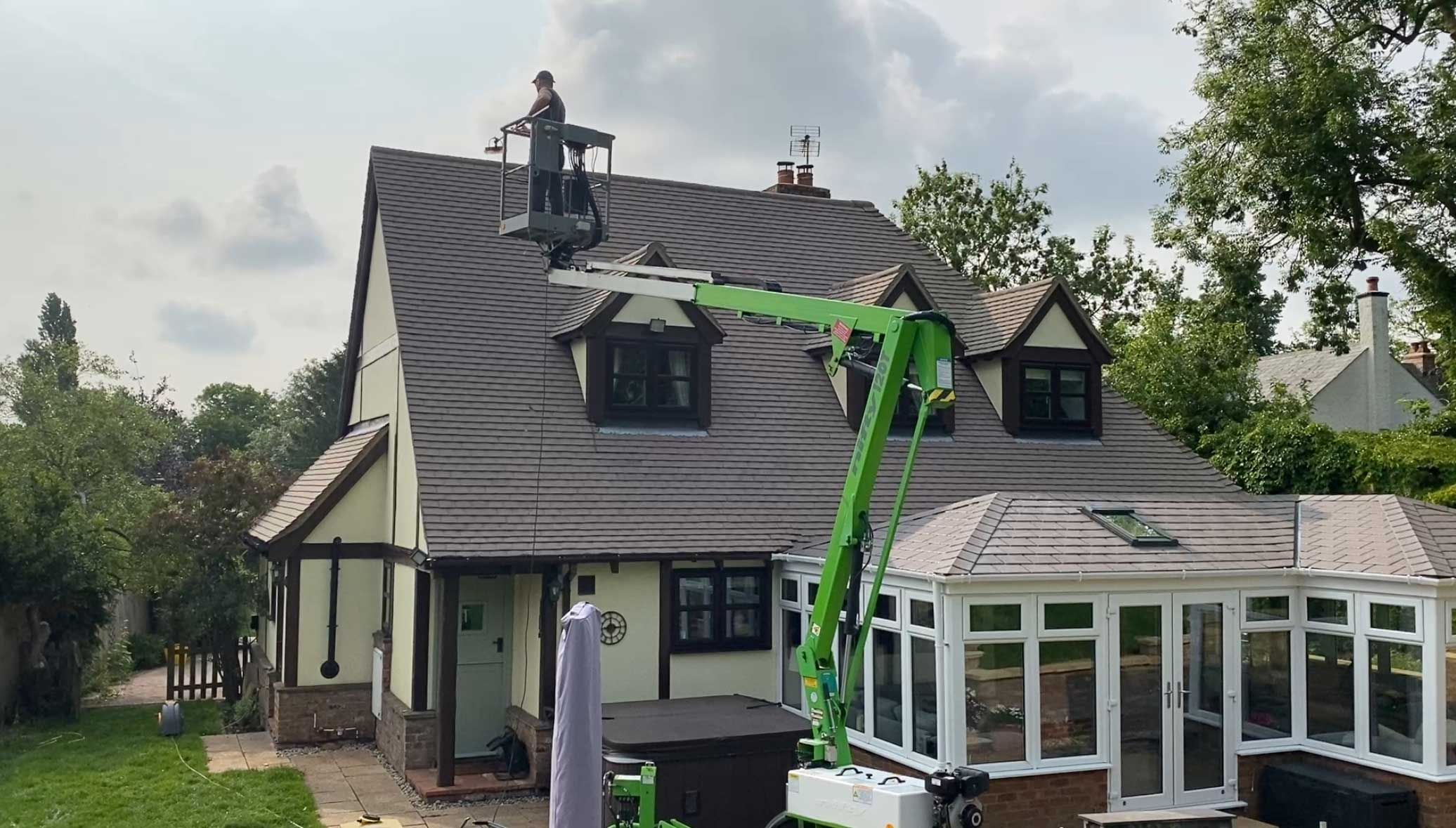 We use tower scaffolding or cherry pickers to safely access the roof — we never walk on tiles, ensuring your roof remains intact and undamaged.
